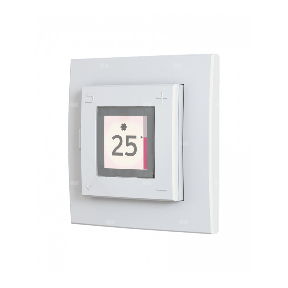 Cyfrowy regulator temperatury pomieszczenia do montażu podtynkowego wyposażony w wyświetlacz ze wskazaniem temperatury oraz program tygodniowy i regulację temperatury w przedziałach co 0,1°C. Opcjonalny komponent Smart Climate System odpowiedni do elektrycznych mat grzewczych oraz wodnego ogrzewania podłogowego. Wymiary (wys. x szer. gł.): 85 x 85 x 30 mm.