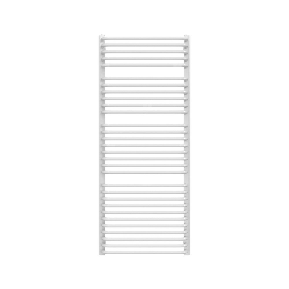 Grzejnik drabinkowy stalowy o poprzeczkach wyprofilowanych w kształcie litery C. Kolektory wykonane z profili o kształcie litery D. Malowany proszkowo, wyposażony w komplet uchwytów, korek oraz odpowietrznik. Moc podana przy parametrach 75/65/20°C.