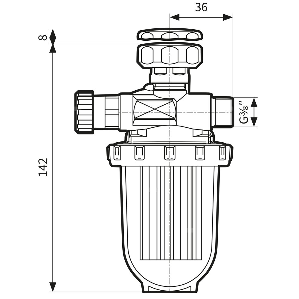 Filtr olejowy AFRISO R500St jednorurowy z powrotem fi 3/8'' x 3/8'' GW x GZ, z wkładem stalowym, maks. przepływ 250 l/h