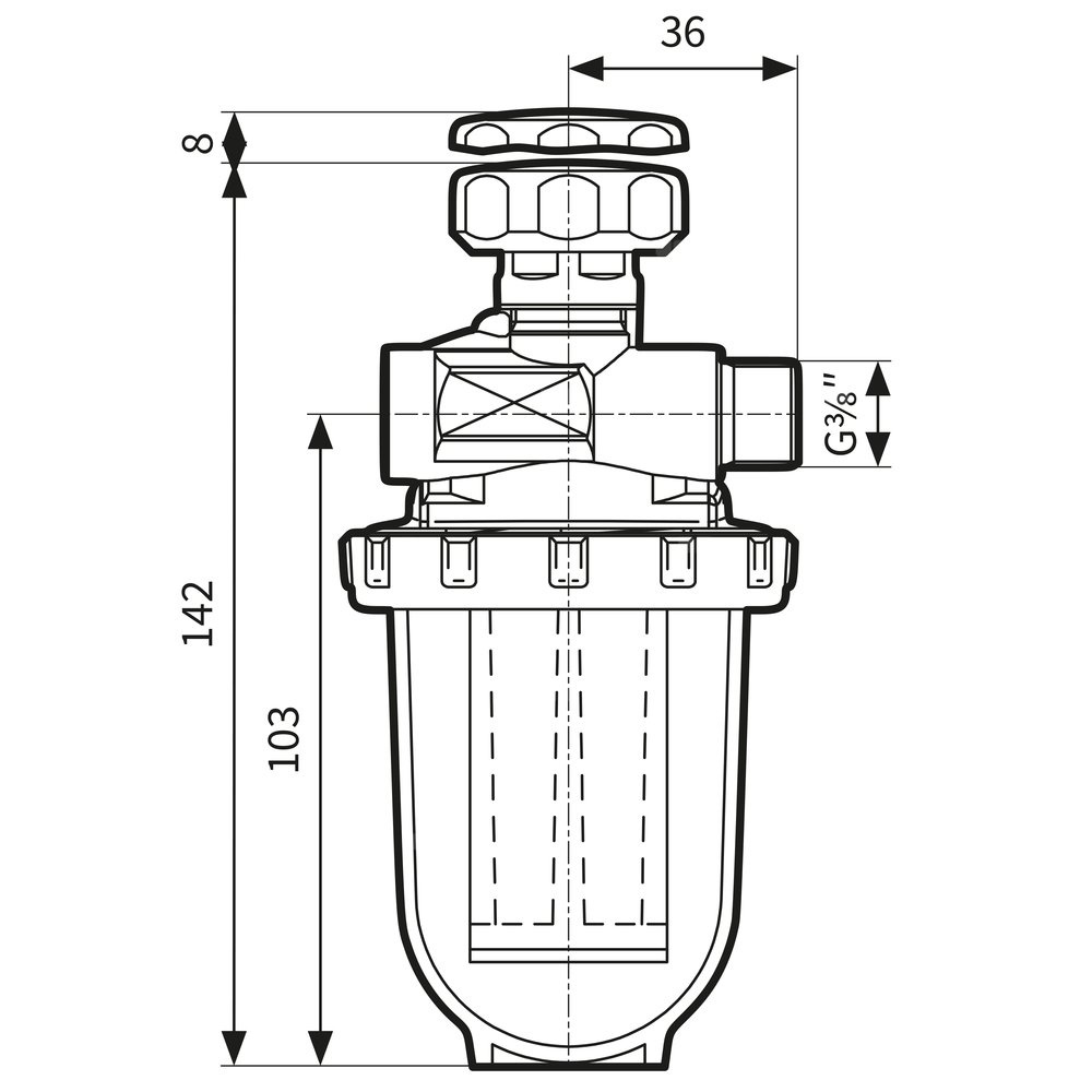 Filtr olejowy AFRISO Z500Si dwururowy fi 3/8'' x 3/8'' GW x GZ, z wkładem plastikowym, maks. przepływ 200 l/h