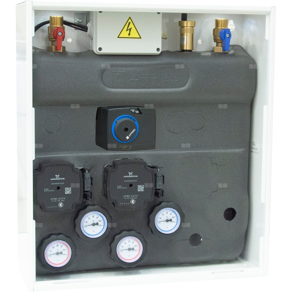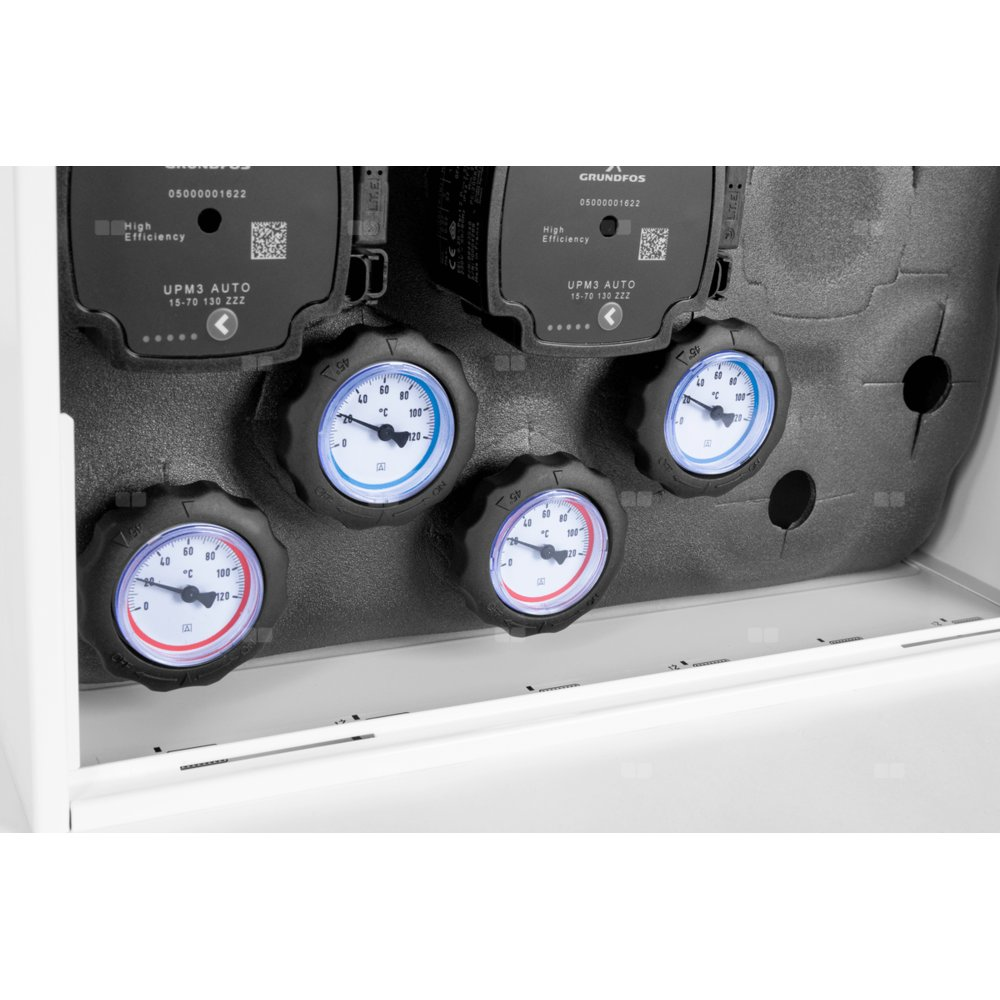 - Wyposażony w pompy Grundfos UPM3 i obrotowy zawór mieszający z siłownikiem ARM 141 ProClick.