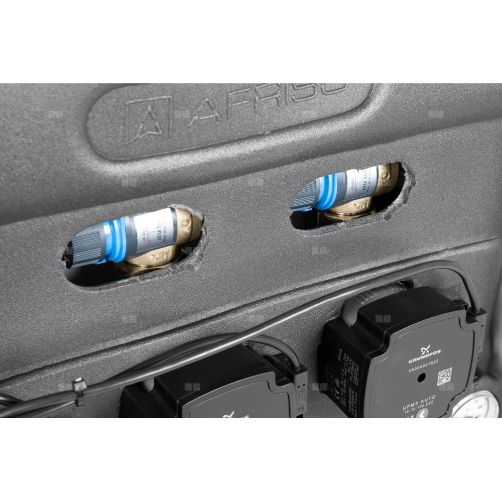 Wyposażony w pompy Grundfos UPm³ oraz 2 mieszające zawory termostatyczne ATM 561.