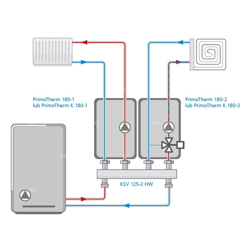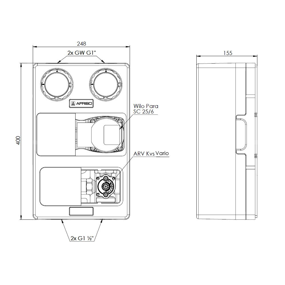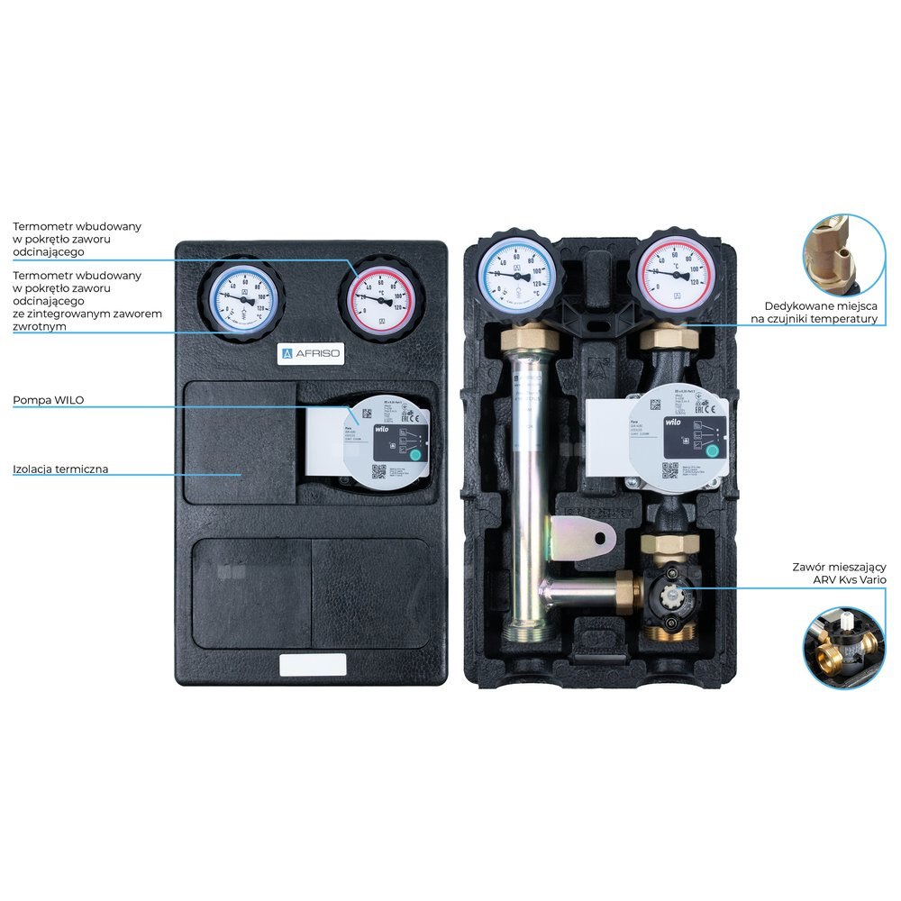 Grupa pompowa AFRISO PrimoTherm K 180-2 DN 25 WP 3-WM GZ x GW 1 1/2'' x 1'', z zaworem mieszającym, z izolacją, z pompą obiegową Wilo Para SC 25/6
