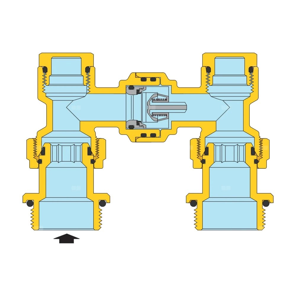 Obejście różnicowe dla rozdzielaczy podwójnych serii 356 i 357. Przyłącze 3/8" do automatycznych zaworów odpowietrzających Przyłącze: G 3/4" A (ISO 228-1) GZ, Podłączenie do złączek Caleffi. Maksymalne ciśnienie pracy: 10 bar. Zakres temperatury medium: -10–110 °C. Stała nastawa ciśnienia różnicowego: 20 (2000 mm c.a.) kPa.