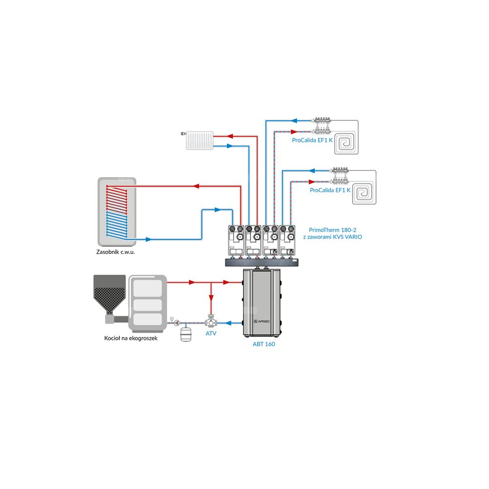 Przeznaczony do szybkiego i wygodnego podłączenia czterech grup pompowych PrimoTherm do źródła ciepła.