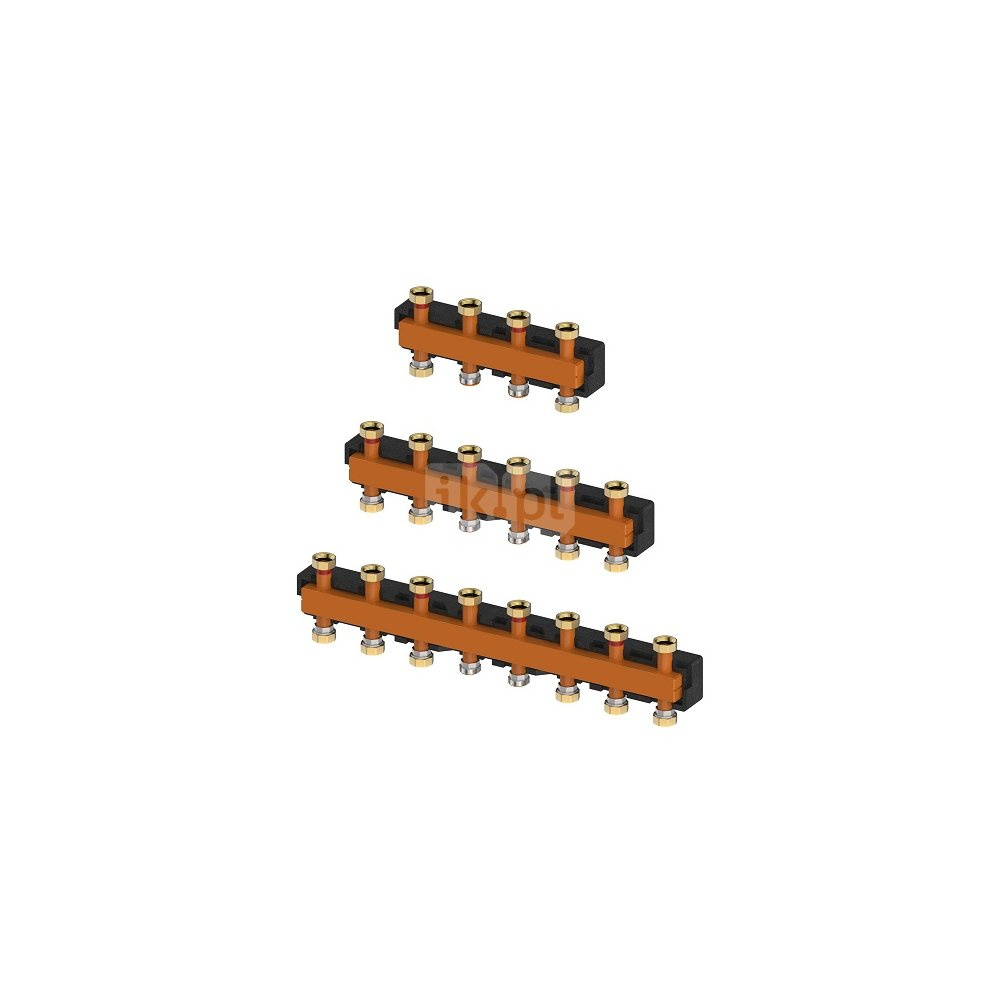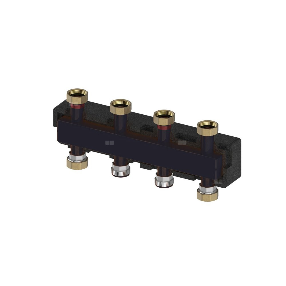 Z izolacją EPP, każdy z 2, 3 lub 4 parami przyłączy skierowanymi do góry lub do dołu (można również zastosować przyłącza dolne), do montażu grup pompowych (pasuje do grup pompowych z rozstawem osi 125 mm), ze wszystkimi niezbędnymi śrubunkami do wykonania montażu.