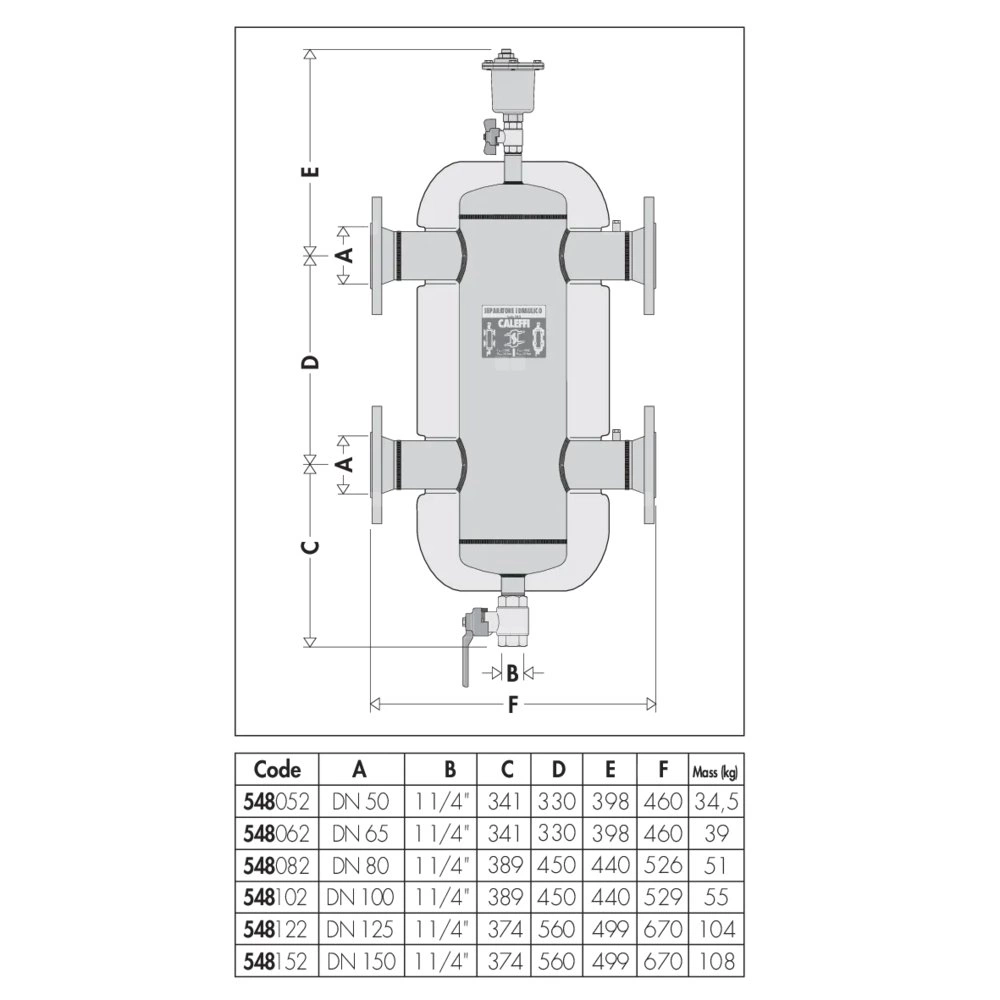 0÷100°C (DN 125 - DN 150).