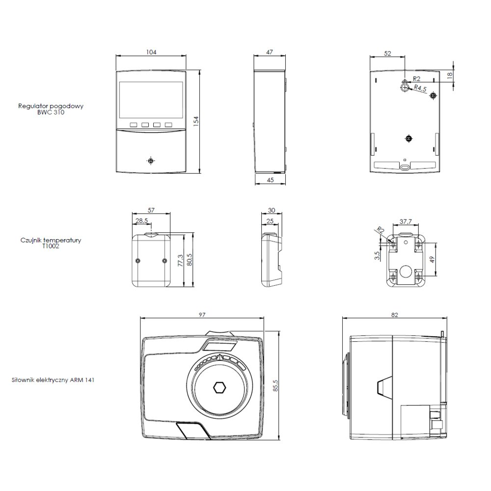 Do instalacji grzewczych.Steruje pracą siłownika 3-punktowego zamontowanego na zaworze 3i 4-drogowym.