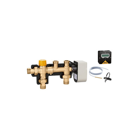 - termostat z czujnikiem dla zaworu rozdzielającego. Wyświetlacz pokazujący temperaturę.