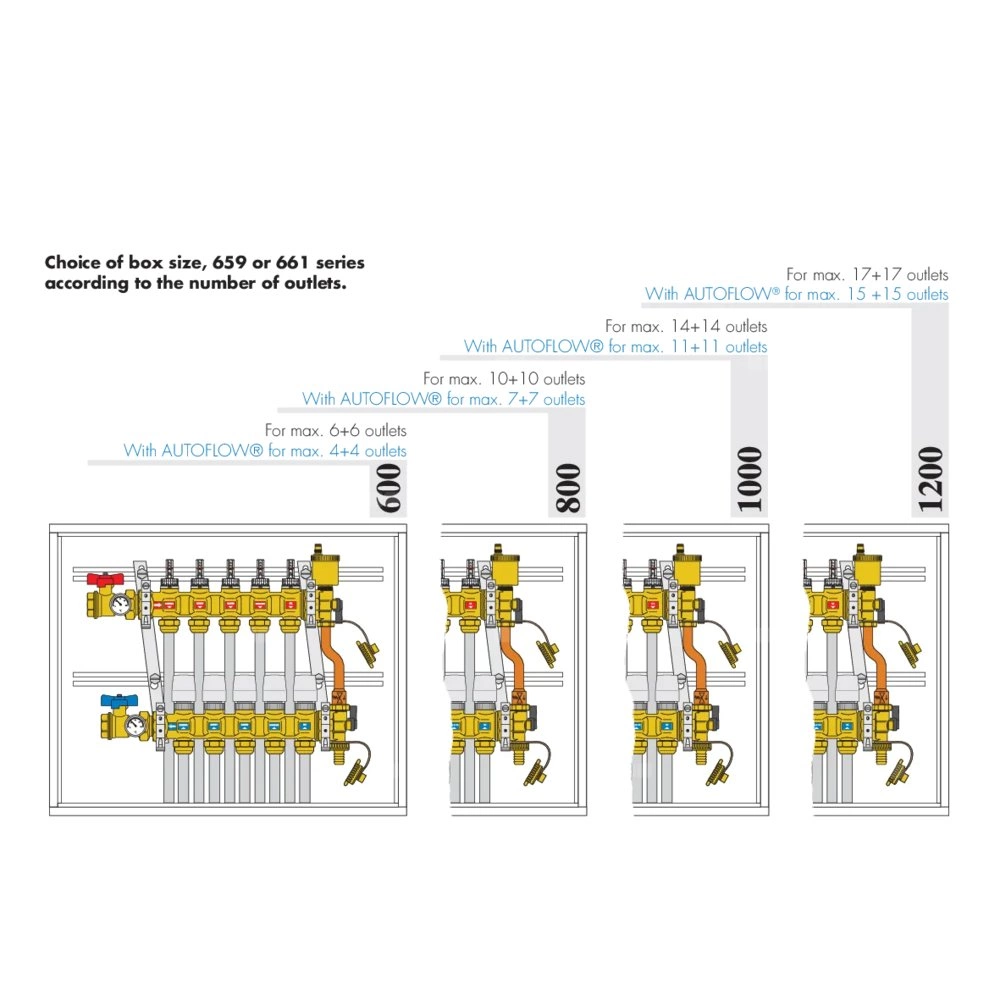 Skrzynka do rozdzielaczy serii 349, 350, 592, 662, 663, 668.S1, 671, 664 i 665. Głębokość: 110–140 mm. Wysokość: 500 mm. Szerokość: 1200 mm. Materiał: blacha malowana.