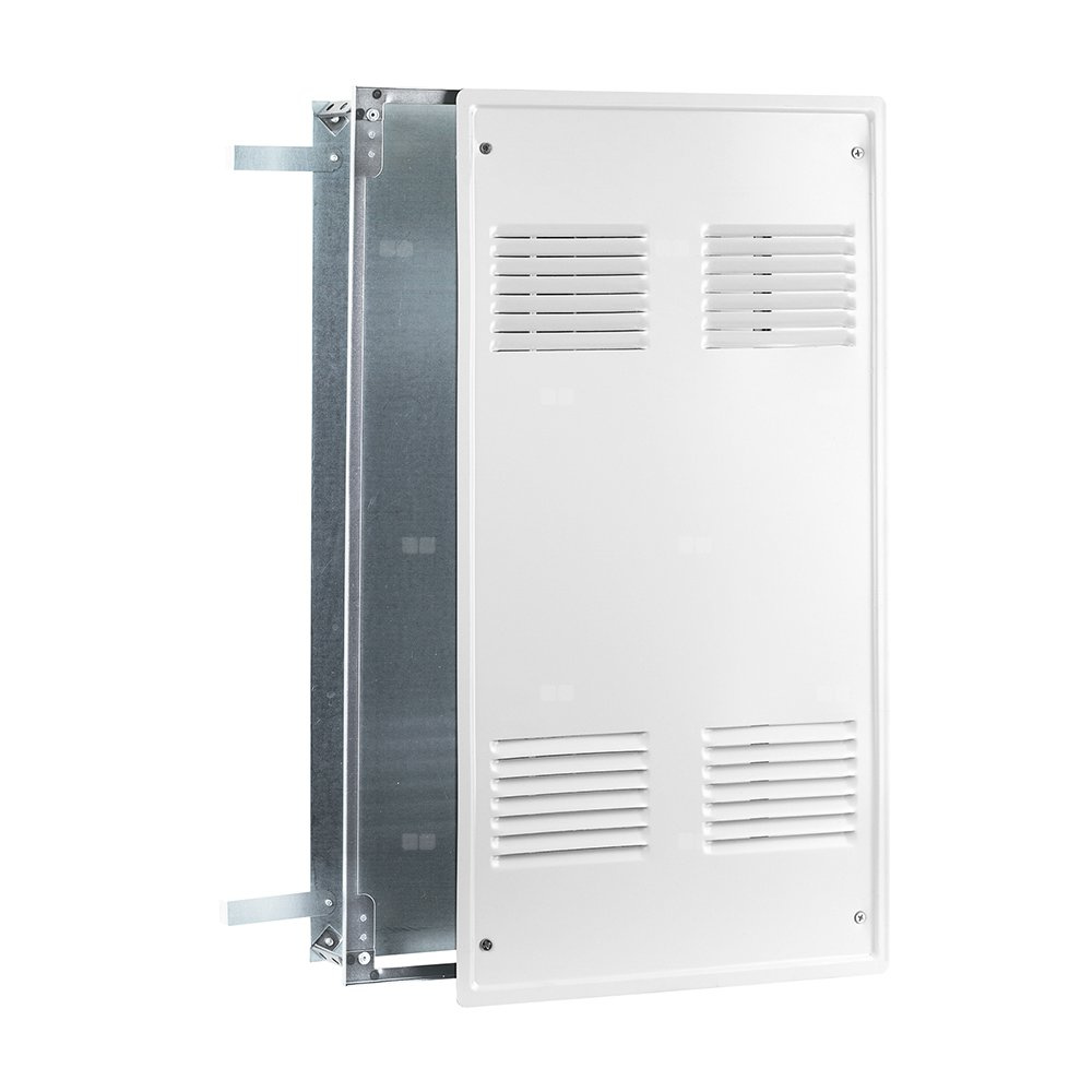 Wpuszczana skrzynka z ramą Z uchwytem montażowym do rozdzielaczy. Do rozdzielaczy podwójnych serii 356. Głębokość: 70-90-110 mm. Wysokość: 370 mm. Szerokość: 275 mm. Materiał: rama ze stali ocynkowana.