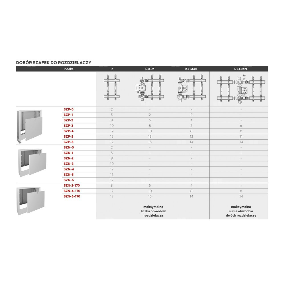 - Maksymalna liczba obwodów rozdzielacza w szafce (R +GM): 2