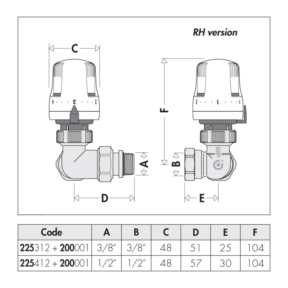 3-osiowy grzejnikowy zawór termostatyczny do rur stalowych (i miedzianych z serią 441). Wykonanie prawe 3/8"