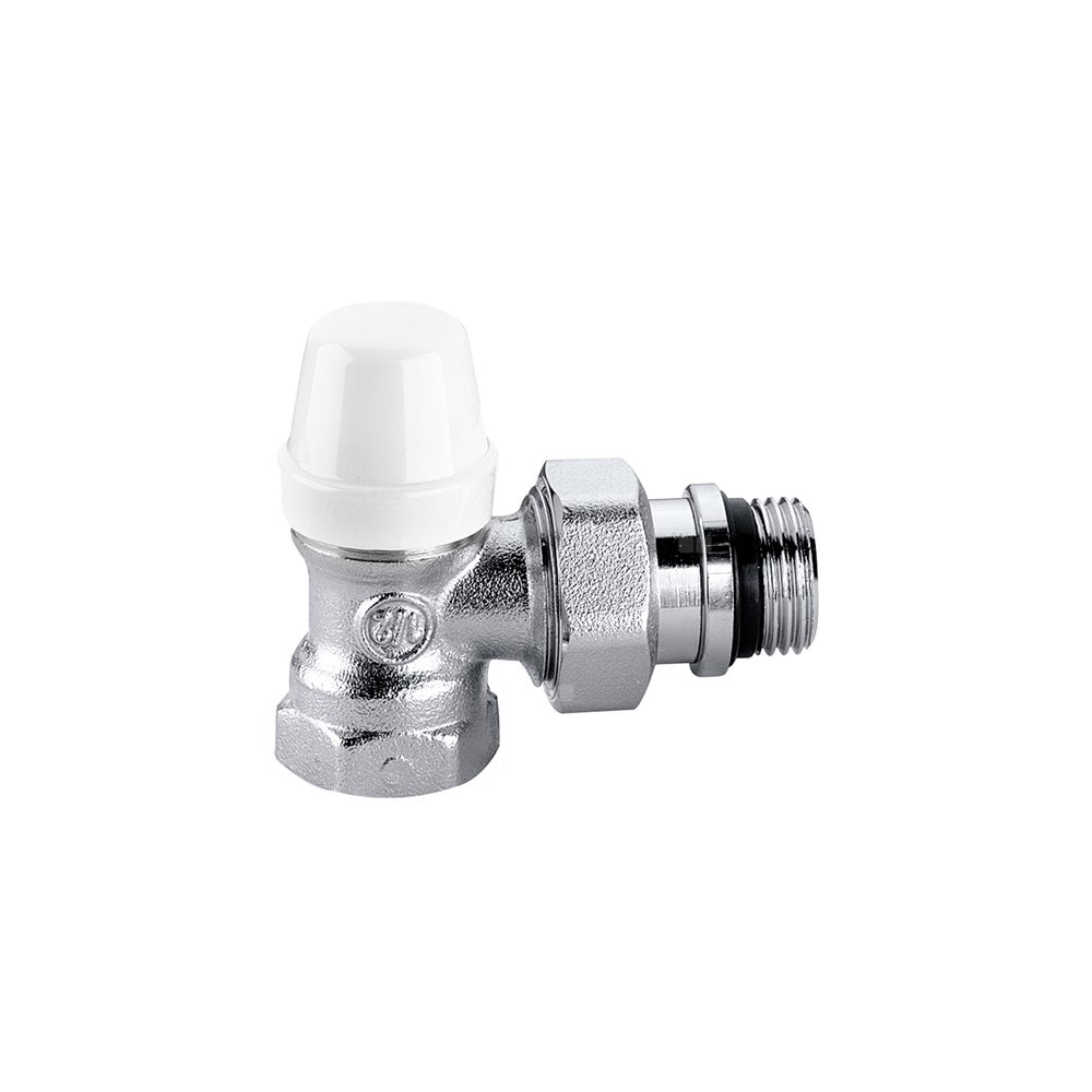 Kątowy, grzejnikowy zawór odcinający podłącznie rury: G 3/8" (ISO 228-1) GW, wlot, podłączenie kątowe. podłączenie grzejnika: G 3/8" A (ISO 228-1) GZ, wylot, podłączenie kątowe. Maksymalne ciśnienie pracy: 10 bar. Zakres temperatury medium: 5–100 °C. Wykończenie: chromowane. Kvs: 2,42 m³/h. Materiał: mosiądz.