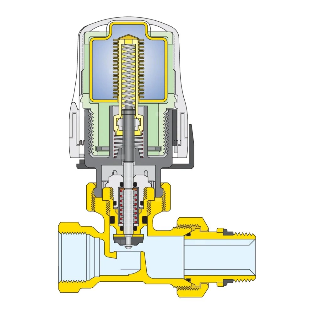 Kątowy grzejnikowy zawór termostatyczny, przystosowany do montażu głowic termostatycznych, elektronicznych i siłowników termoelektrycznych Przyłącze: G 3/8" (ISO 228-1) GW, wlot, podłączenie kątowe. Przyłącze: G 3/8" A (ISO 228-1) GZ, wylot, podłączenie kątowe. Maksymalne ciśnienie pracy: 10 bar. Zakres temperatury medium: 5–100 °C. Wykończenie: chromowane. Kvs: 2,29 m³/h. Materiał: mosiądz.