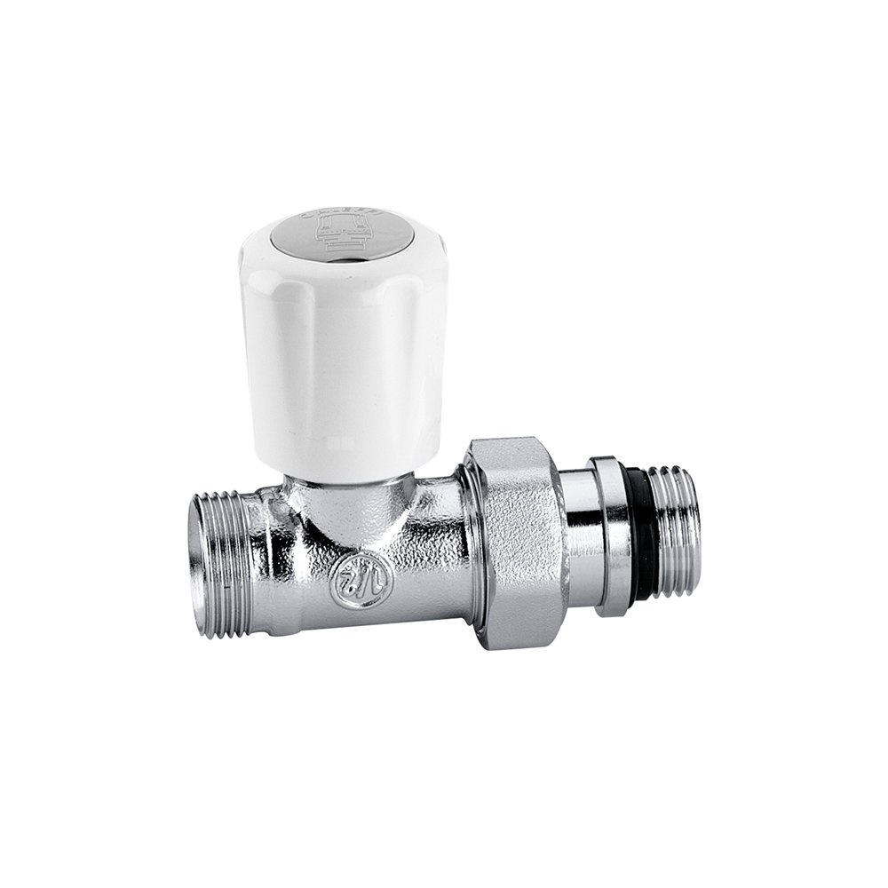 Prosty grzejnikowy zawór termostatyczny z pokrętłem przystosowany do montażu głowic termostatycznych, elektronicznych i siłowników termoelektrycznych. podłącznie rury: 23 p. 1,5, wlot, podłączenie proste, Podłączenie do złączek Caleffi. podłączenie grzejnika: G 3/8" A (ISO 228-1) GZ, wylot, podłączenie proste. Maksymalne ciśnienie pracy: 10 bar. Zakres temperatury medium: 5–100 °C. Wykończenie: chromowane. Kv: 1,35 m³/h. Materiał: mosiądz.