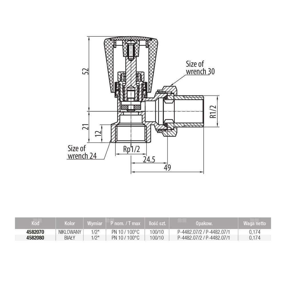 - Możliwość kontroli stopnia otwarcia zaworu na skali