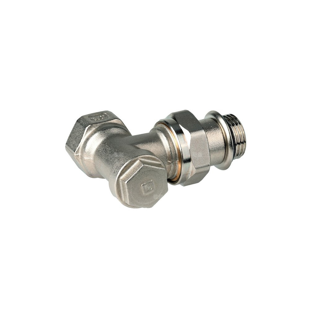 Zawór powrotny VERAFIX-E, kątowy, 3/8", gwint wewnętrzny, ze złączką do grzejnika z uszczelnieniem miękkim