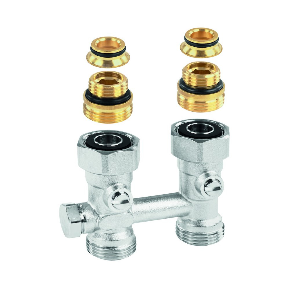 Zawór VKE, prosty, podwójny z regulacją, do instalacji 1-rurowych, nypel redukcyjny 3/4" na 1/2" w zestawie