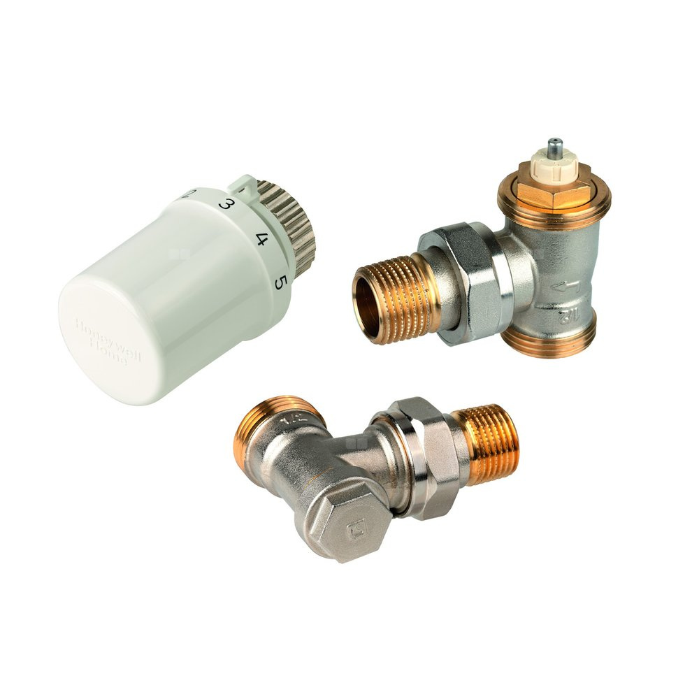 2. Zawór termostatyczny z wkładką SX, kątowy, przyłącze 1/2". Korpus z gwintami zewnętrznymi i złączką do grzejnika z uszczelnieniem metal-metal