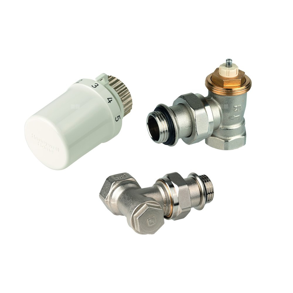 Zestaw do grzejników bocznozasilanych: głowica Thera-6 T3019W0 + Zawór termostatyczny, kątowy, wkładka SX, 1/2" V2030ESX15 (złączka do grzejnika uszcz. miękkie) + zawór powrotny, kątowy, 1/2", V2430E0015A