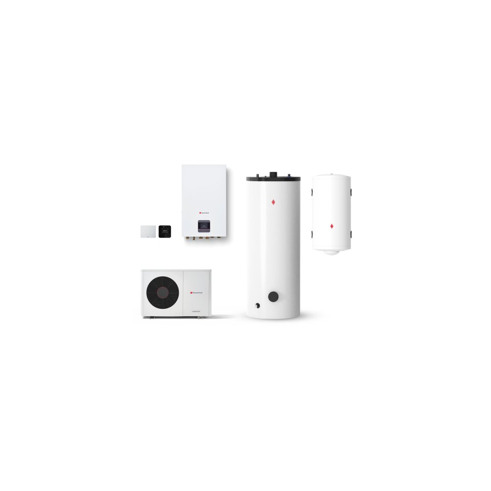 Pompa ciepła powietrze/woda typu split HA 3-8.2 OS 230V, moduł ścienny HA 5-8.2 WSB, regulator MiPro sense SRC 720, zintegrowany moduł internetowy SR 940, zasobnik cwu FEW 250, czujnik cwu w dostawie z modułem ściennym, bufor co WN RW 50.