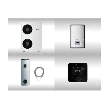 Pompa ciepła powietrze-woda split SAUNIER DUVAL GeniaAir HA 10-5 OS 10.2 kW 400 V + Moduł naścienny HA 12-5 WSB + Zasobnik c.w.u. FEW 300 + Regulator SRC 720
