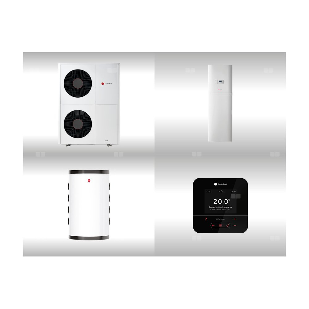 Pompa ciepła powietrzna powietrze-woda monoblok SAUNIER DUVAL GeniaAir HA 12-6 O 12.2 kW 400 V + Centrala grzewcza FEW 200/6 + Moduł komunikacji internetowej SR 940f + Zasobnik buforowy WR RW 50 + Regulator SRC 720