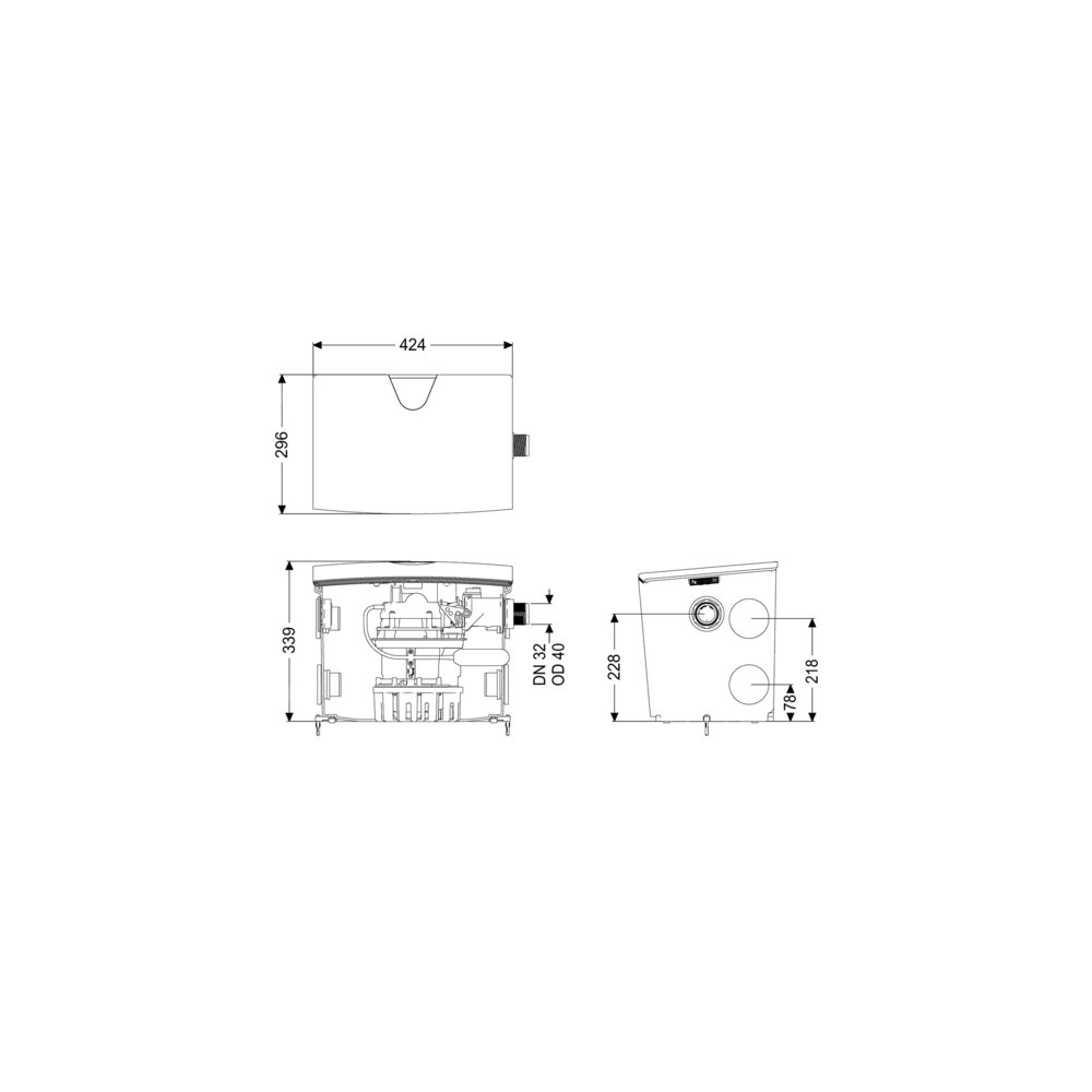 Mała przepompownia wewnętrzna Minilift S jest dostarczana w stanie gotowym do podłączenia i przeznaczona jest do usuwania ścieków domowych. Świetnie nadaje się do podłączenia do kabiny prysznicowej, wanny, umywalki, zlewozmywaka, pralki czy zmywarki. Pompę zatapialną z przełącznikiem pływakowym można łatwo wyjąć za zamknięcia obsługiwane jedną ręką. Zbiornik wykonany z tworzywa sztucznego posiada otwartą komorę pompy i jest odporny na działanie agresywnych ścieków. Dzięki licznym dopływom (4x DN 50 w poziomie, 1x DN 40 w pionie) i dwóm zamiennym otworom na odpływ urządzenie umożliwia uniwersalny i prosty montaż w miejscu zabudowy. - odporna na gorącą wodę i solankę - fabrycznie wbudowany zawór zwrotny po stronie tłocznej - wydajna pompa z wirnikiem Vortex dla najwyższego bezpieczeństwa pracy - konserwacja bez użycia narzędzi
