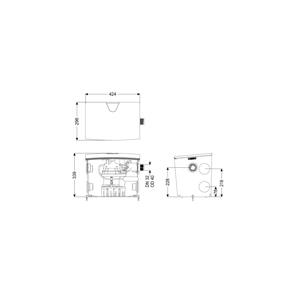 Mała przepompownia wewnętrzna Minilift S jest dostarczana w stanie gotowym do podłączenia i przeznaczona jest do usuwania ścieków domowych. Świetnie nadaje się do podłączenia do kabiny prysznicowej, wanny, umywalki, zlewozmywaka, pralki czy zmywarki. Pompę zatapialną z przełącznikiem pływakowym można łatwo wyjąć za zamknięcia obsługiwane jedną ręką. Zbiornik wykonany z tworzywa sztucznego posiada otwartą komorę pompy i jest odporny na działanie agresywnych ścieków. Dzięki licznym dopływom (4x DN 50 w poziomie, 1x DN 40 w pionie) i dwóm zamiennym otworom na odpływ urządzenie umożliwia uniwersalny i prosty montaż w miejscu zabudowy. - odporna na gorącą wodę i solankę - fabrycznie wbudowany zawór zwrotny po stronie tłocznej - wydajna pompa z wirnikiem Vortex dla najwyższego bezpieczeństwa pracy - konserwacja bez użycia narzędzi