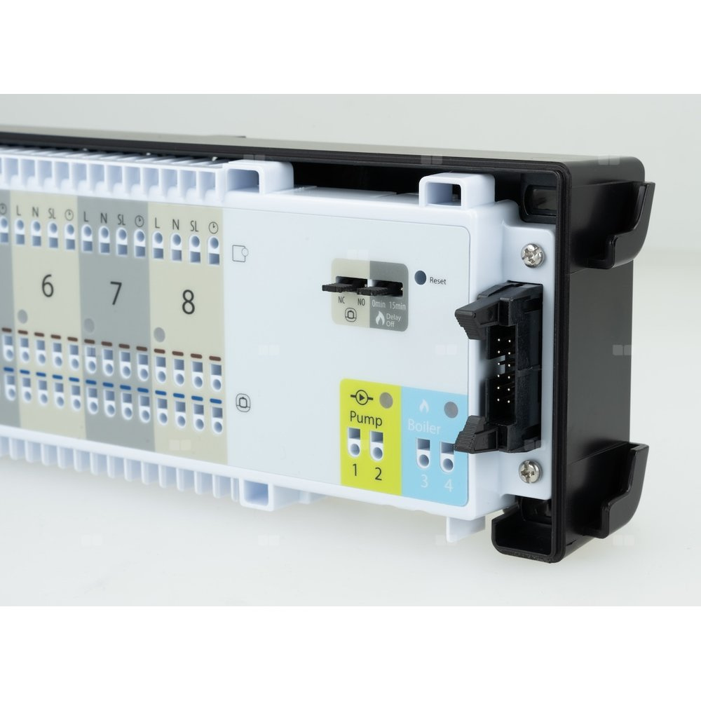- Umożliwia podłączenie regulatorów do grzania/chłodzenia płaszczyznowego.- Łączy się z regulatorami przewodowo.