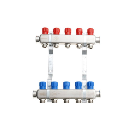 Rozdzielacz do instalacji c.o. QIK Optimo III RNRR-2 (inox) GW 1'', 10-obieg. GZ 3/4'' z korkami i nyplami