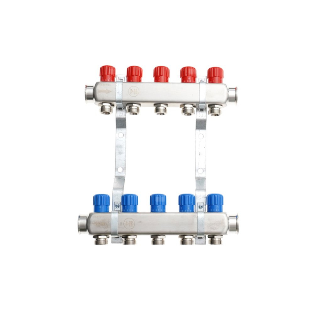 Rozdzielacz do instalacji c.o. QIK Optimo III RNRR-2 (inox) GW 1'', 16-obieg. GZ 3/4'' z korkami i nyplami
