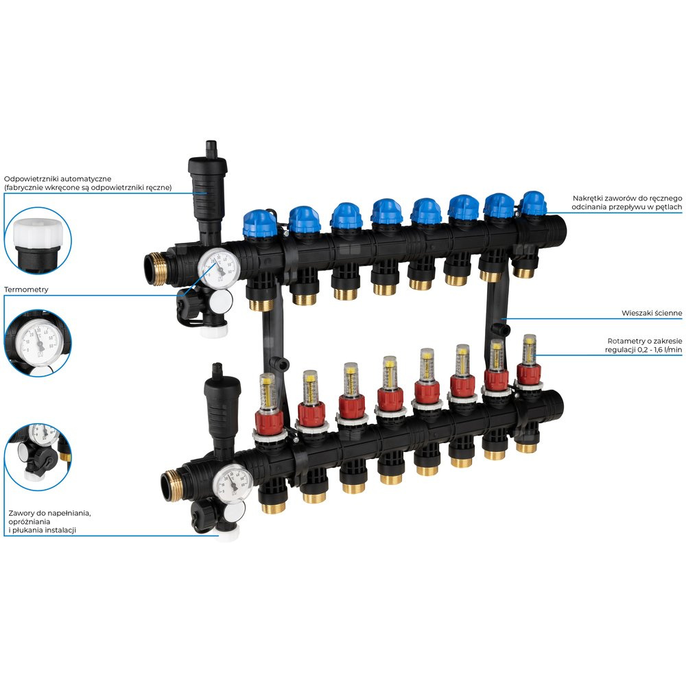 Rozdzielacz do ogrzewania podłogowego AFRISO ProCalida EF1 8-obieg. poliamid GZ 1'' x euroconus 3/4''