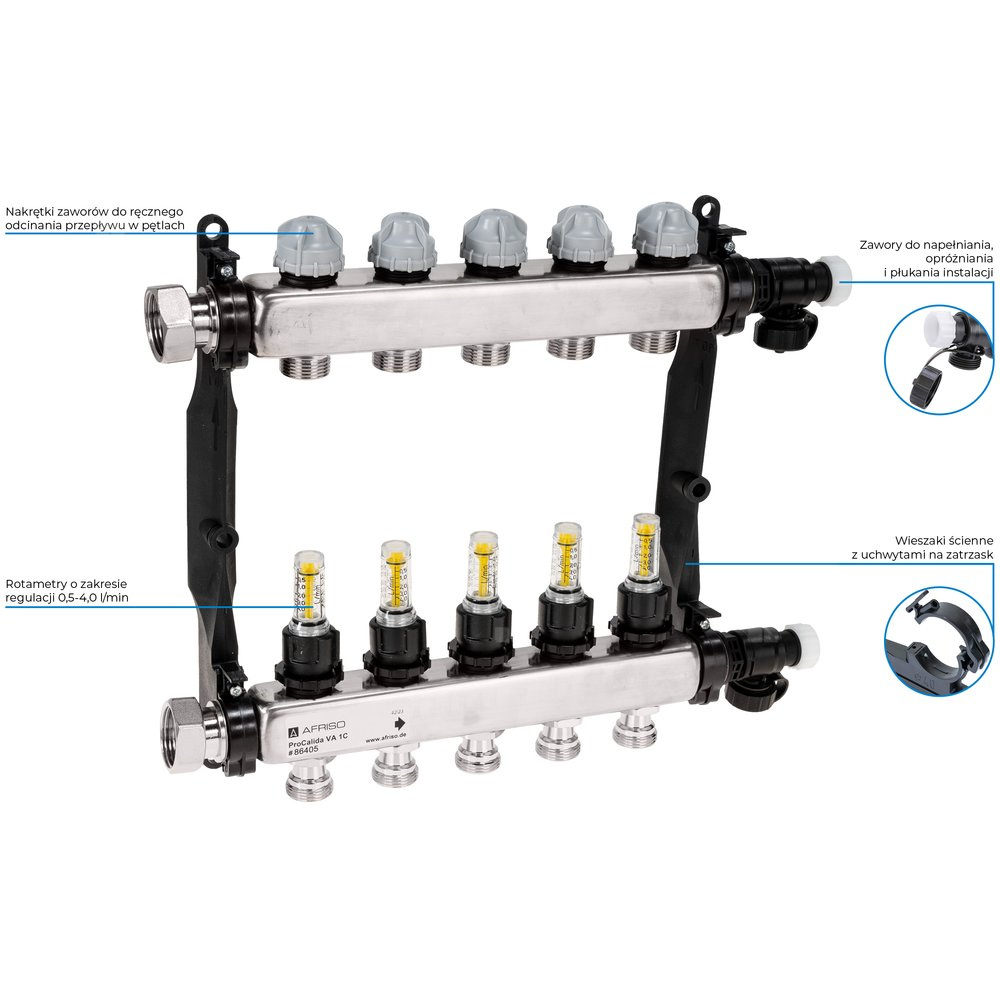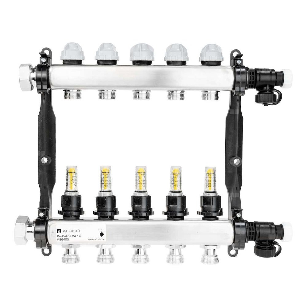 Rozdzielacz do ogrzewania podłogowego AFRISO ProCalida VA 1C 5-obieg. stal nierdzewna GZ 1'' x euroconus 3/4''