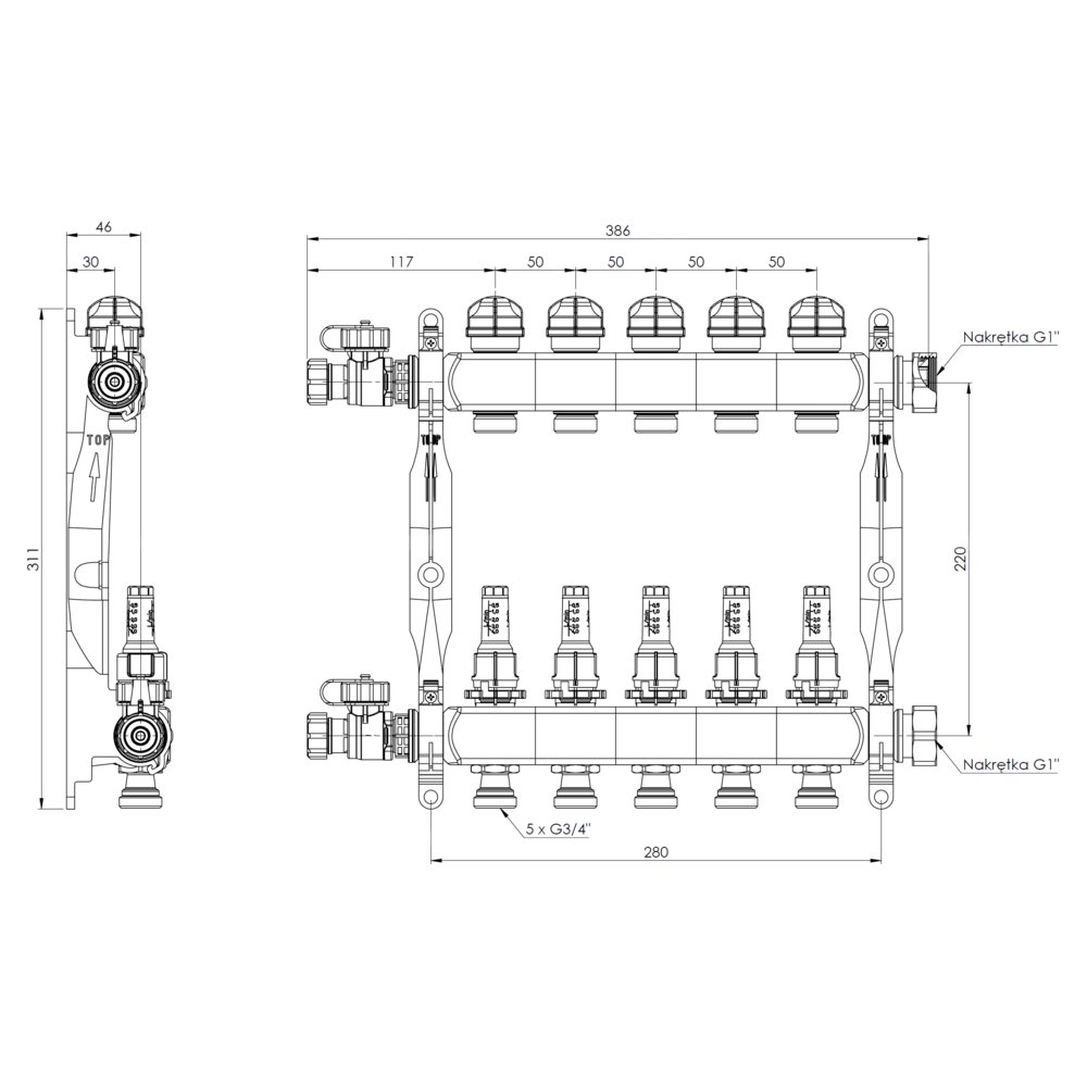 Rozprowadza ciepło/chłód ze źródła na poszczególne pętle instalacji płaszczyznowej.