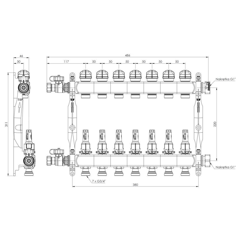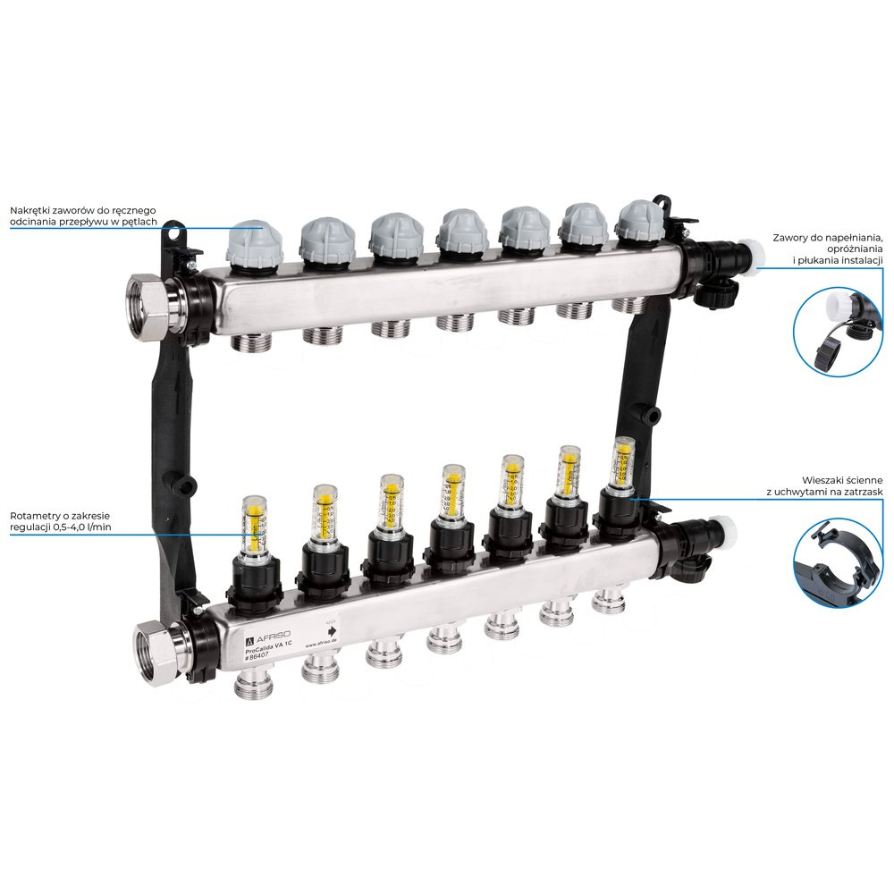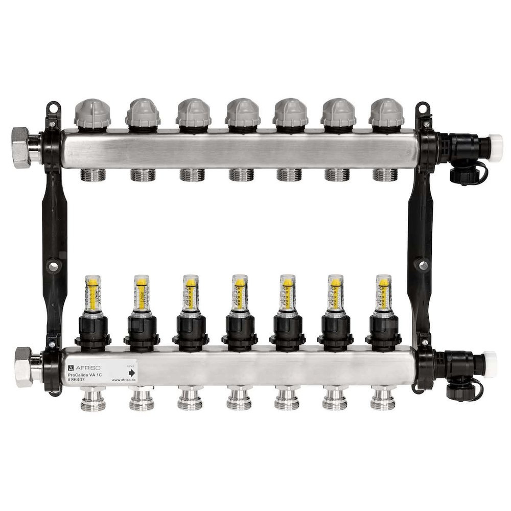 Rozdzielacz do ogrzewania podłogowego AFRISO ProCalida VA 1C 7-obieg. stal nierdzewna GZ 1'' x euroconus 3/4''