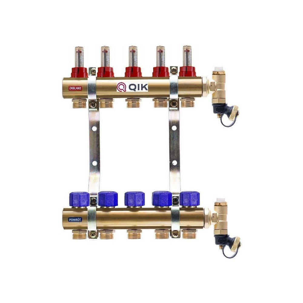 Rozdzielacz do ogrzewania podłogowego QIK BASIC II TN 6-obieg. mosiądz GW 1'' x GZ 3/4'' + przepływomierz
