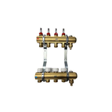 Rozdzielacz do ogrzewania podłogowego QIK MAGNET 10-obieg. mosiądz GW 1'' x GZ 3/4'' + przepływomierz