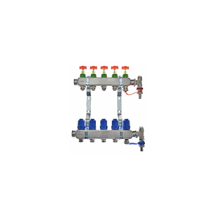 Rozdzielacz do ogrzewania podłogowego QIK Optimo BASIC III PC - RNZT-2-50 2,5l 10-obieg. inox GW 1'' x GZ 3/4'' + przepływomierz