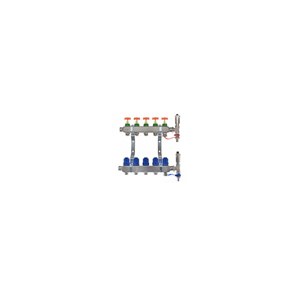Rozdzielacz do ogrzewania podłogowego QIK Optimo STANDARD III PC - RNZT-1-50 2,5l 8-obieg. inox GW 1'' x GZ 3/4'' + przepływomierz
