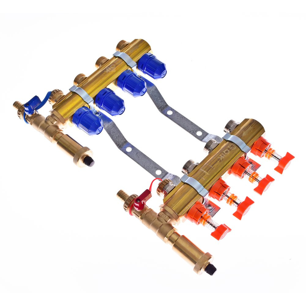 Rozdzielacz do ogrzewania podłogowego QIK Optimo STANDARD III - RMSZT-1-50 3-obieg. mosiądz GW 1'' x GZ 3/4'' + przepływomierz