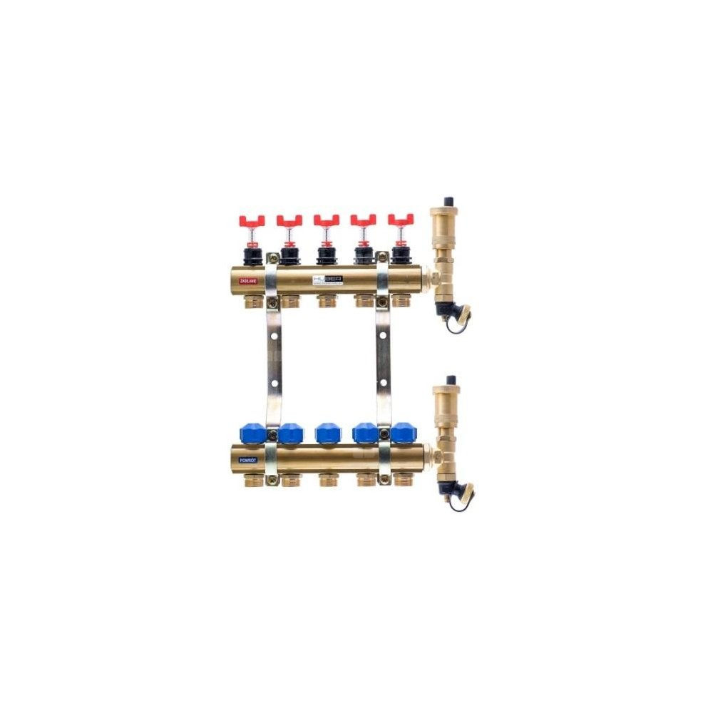 Rozdzielacz do ogrzewania podłogowego QIK QIK PC STANDARD II 15-obieg. mosiądz GW 1'' x GZ 3/4'' + przepływomierz