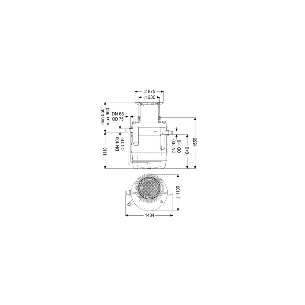 Separator tłuszczu EasyClean ground Direct 80D-DR (T:550-950mm), NS 4, do zabudowy w ziemi, właz kl. D z Lock&Lift, króciec prawy
