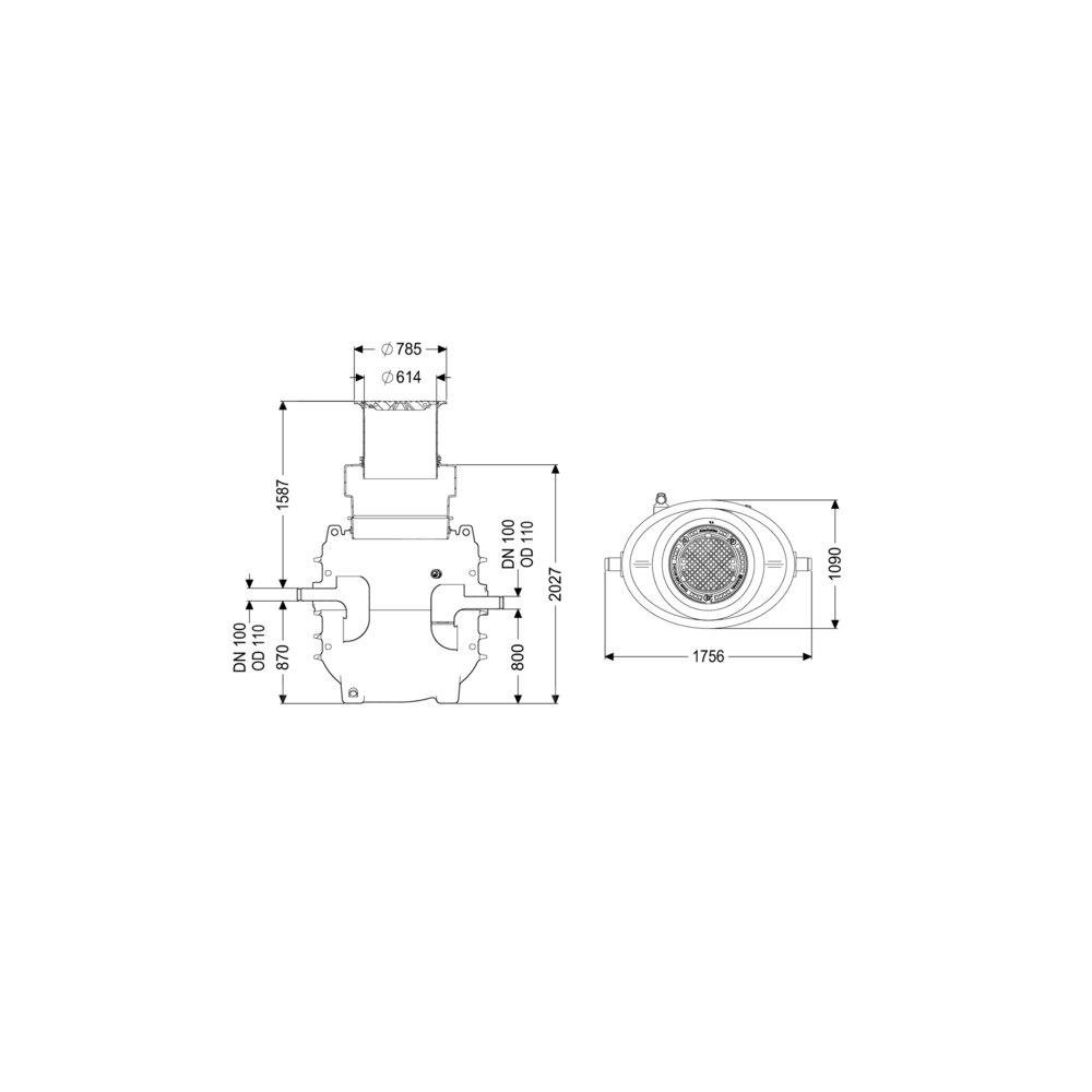 Odstęp między dnem rury dopływowej a dnem zbiornika: 870 mm