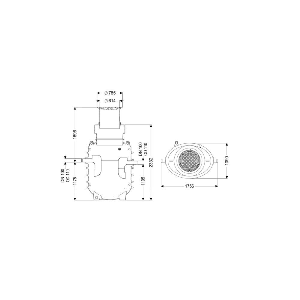 Wielkość nominalna dopływu (DN): 100 mm