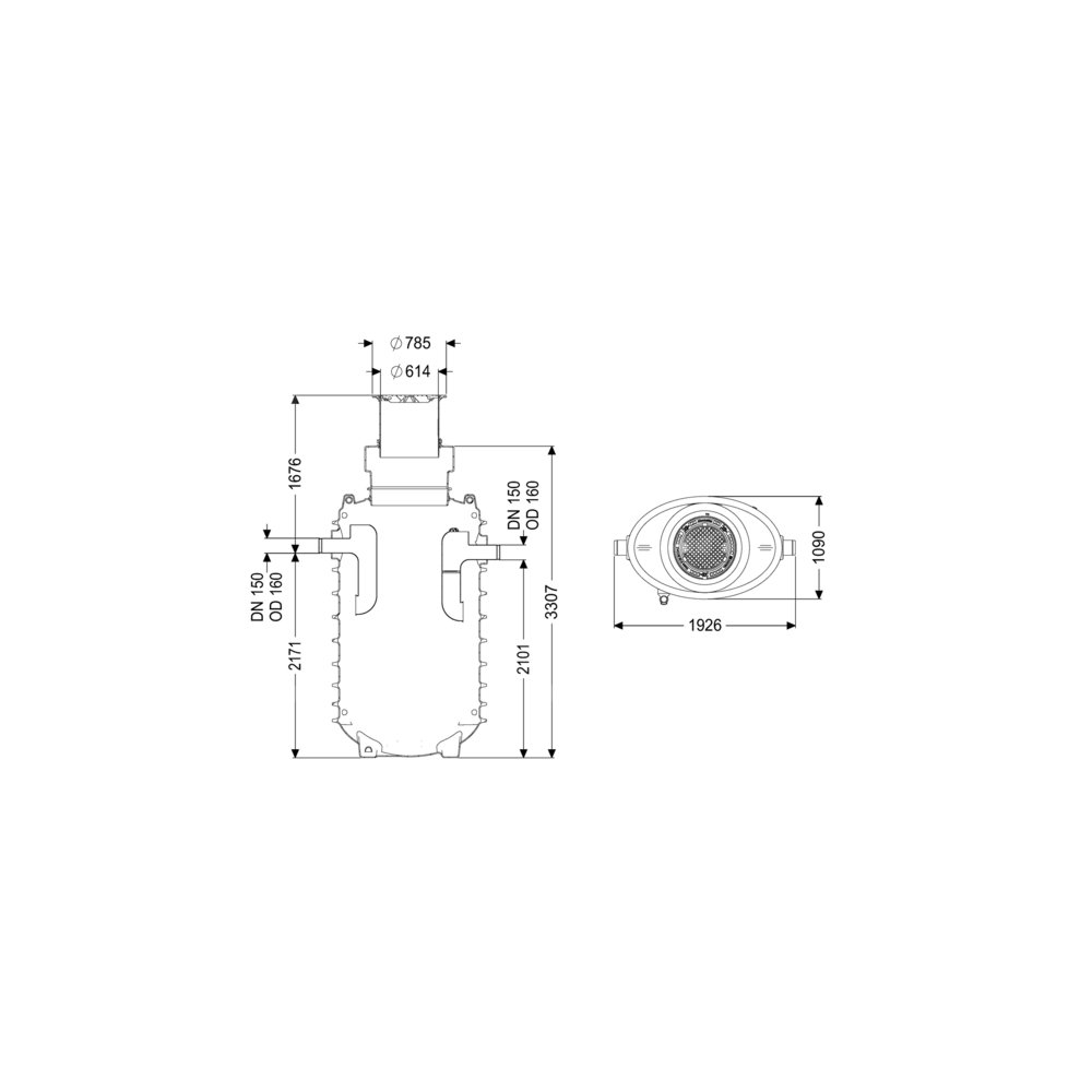 Wielkość nominalna dopływu (DN): 150 mm