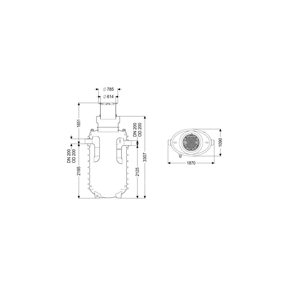 Wielkość nominalna odpływu (DN): 200 mm