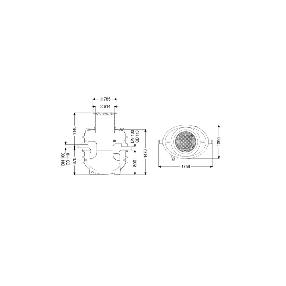 Odstęp między dnem rury dopływowej a dnem zbiornika: 870 mm