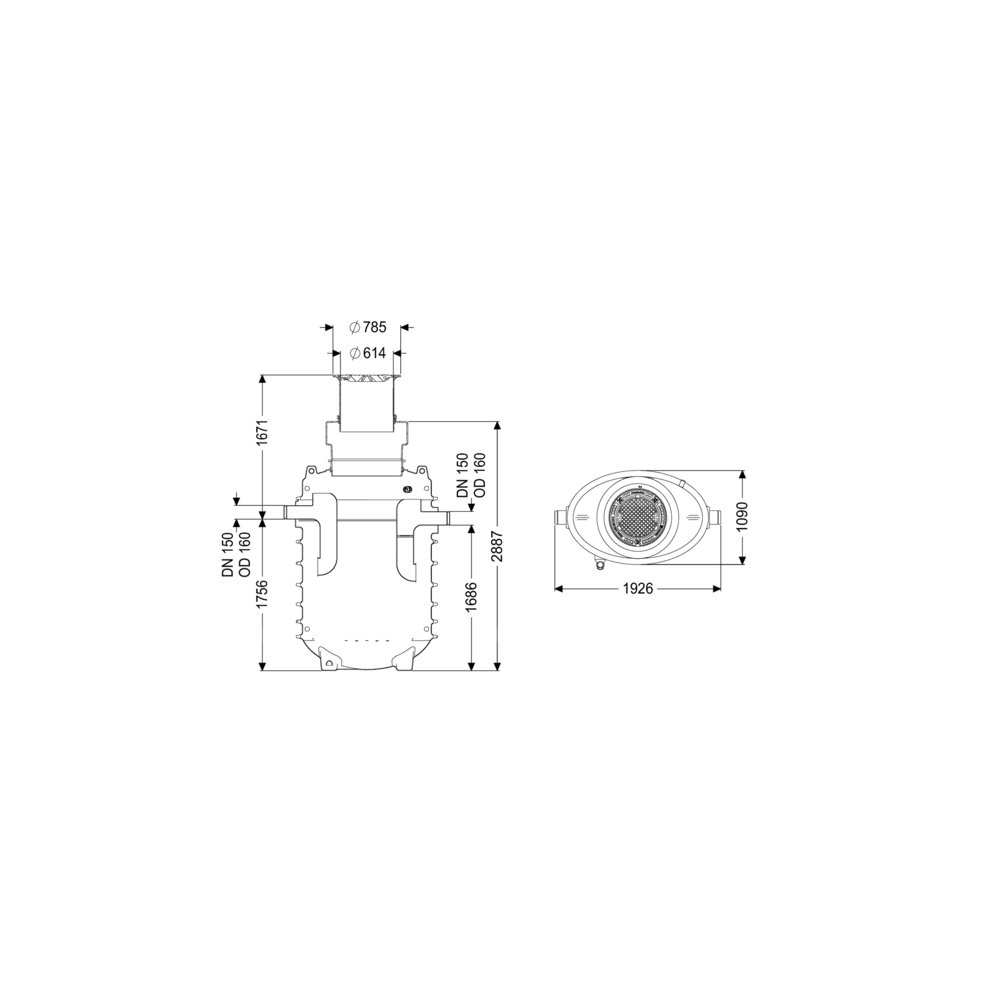 Wielkość nominalna dopływu (DN): 150 mm